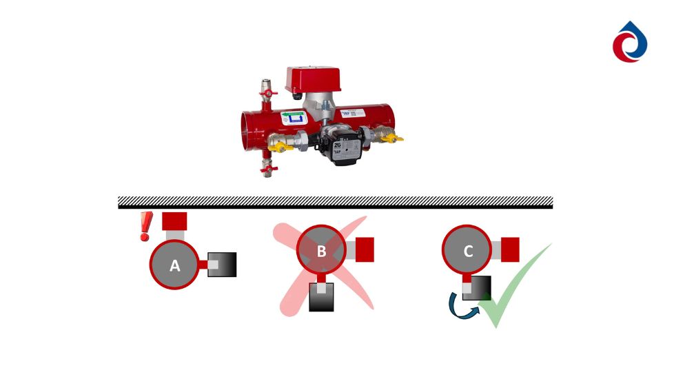 However, we have a solution that you are free to use when installing, and in fact in some cases it is critical that you do. The answer is to slightly loosen off the large nuts fastening the pump manifold to the isolation valves, then rotate the pump in the desired direction until the label plate is in a vertical position (and therefore the shaft will be horizontal) before re-tightening the retention nuts. It’s only a two-minute job, and will save future pain.
